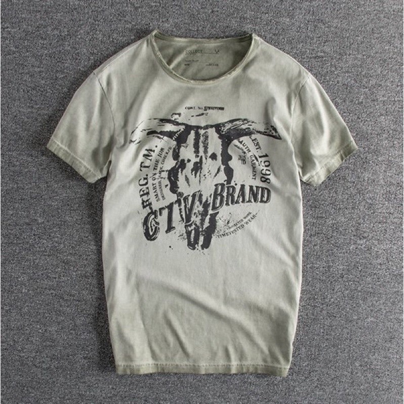 Áo thun cổ tròn wash phong cách Retro